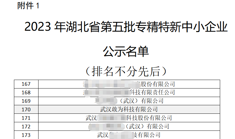 重大喜訊!3月21日,在湖北省經濟和信息化廳公示的《湖北省第五批專精特新中小企業名單》中,敢為科技榜上有名。本次入選是政府與行業主管部門對敢為科技的科技創新、成果轉化、行業專業水平等綜合實力的充分認可!