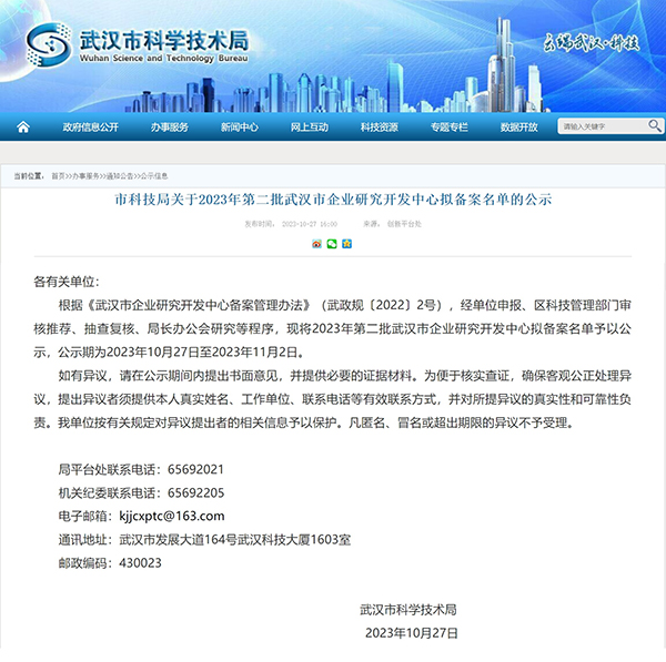 經單位申報、區科技管理部門審核推薦、抽查復核、局長辦公會研究等嚴苛程序,《2023年第二批武漢市企業研究開發中心擬備案名單》于近日正式公布,敢為科技入選。