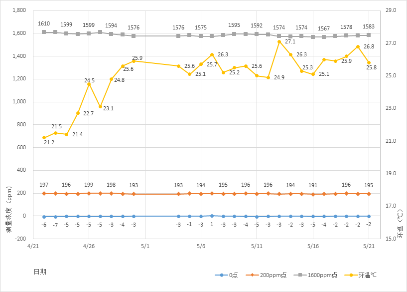 采用先進的雙光束的非分散光電檢測技術 (D-NDIR)有效避免干擾。